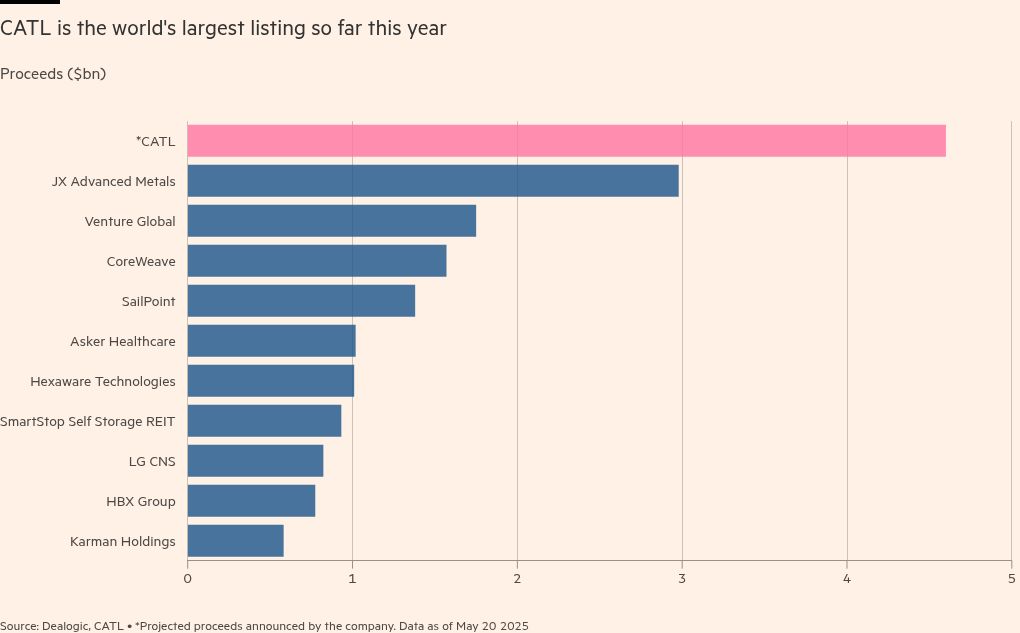 China’s battery leader CATL surges on debut after biggest listing of 2025