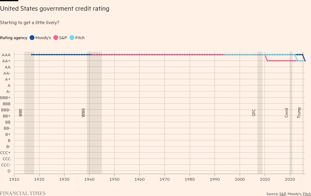 The explosion of debt in recent years finally led Moody’s to downgrade U.S. credit on Friday evening, meaning federal debt…